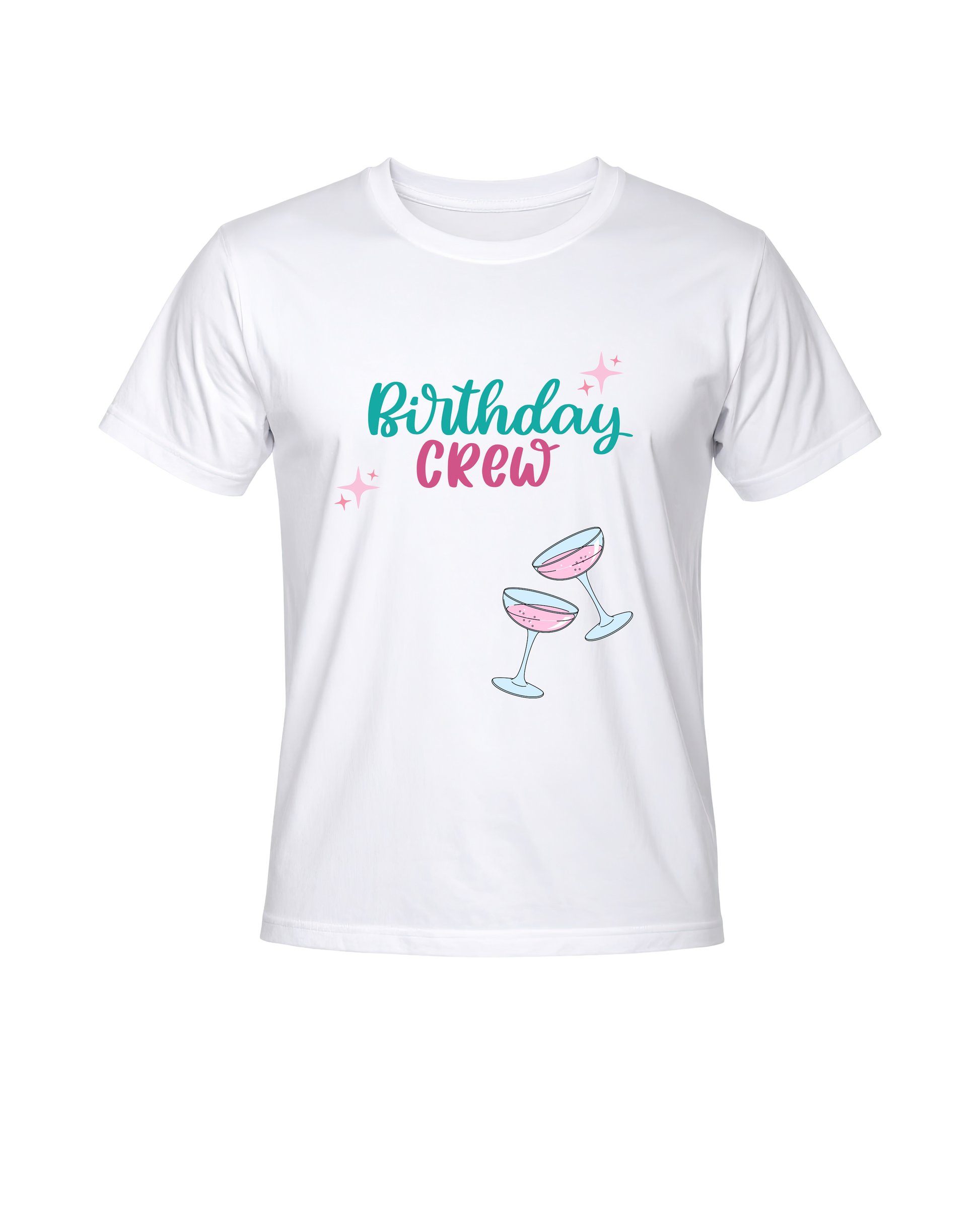 Make your birthday celebration even more fun with our Birthday Crew T-shirt. Featuring vibrant colors and clinking glasses, this shirt is perfect for friends and family joining the party in style and comfort.