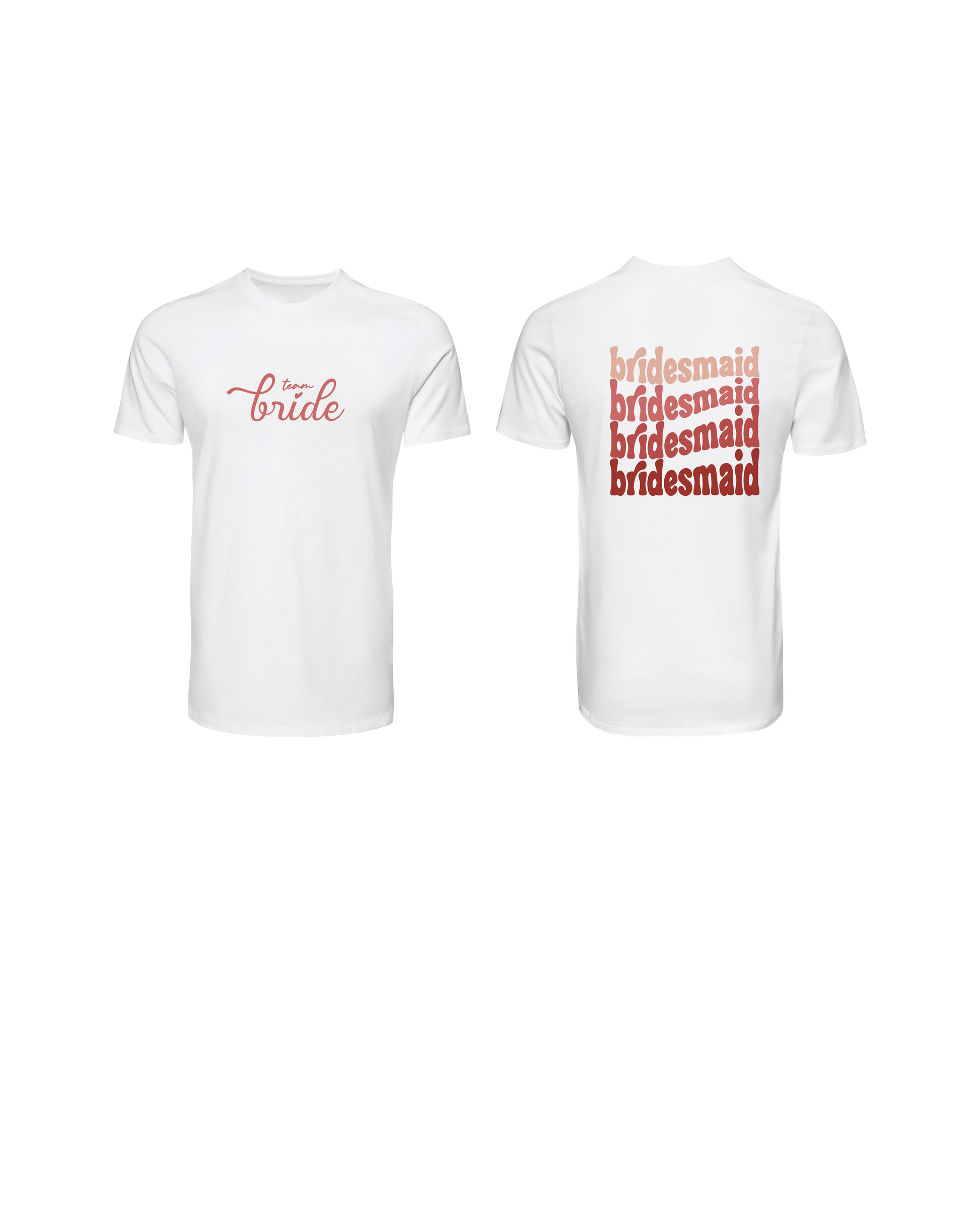Celebrate friendship and unity with this t-shirt specially designed for bridesmaids. The front features the elegant “team bride” text, while the back showcases a bold and trendy repetition of the word “bridesmaid”.