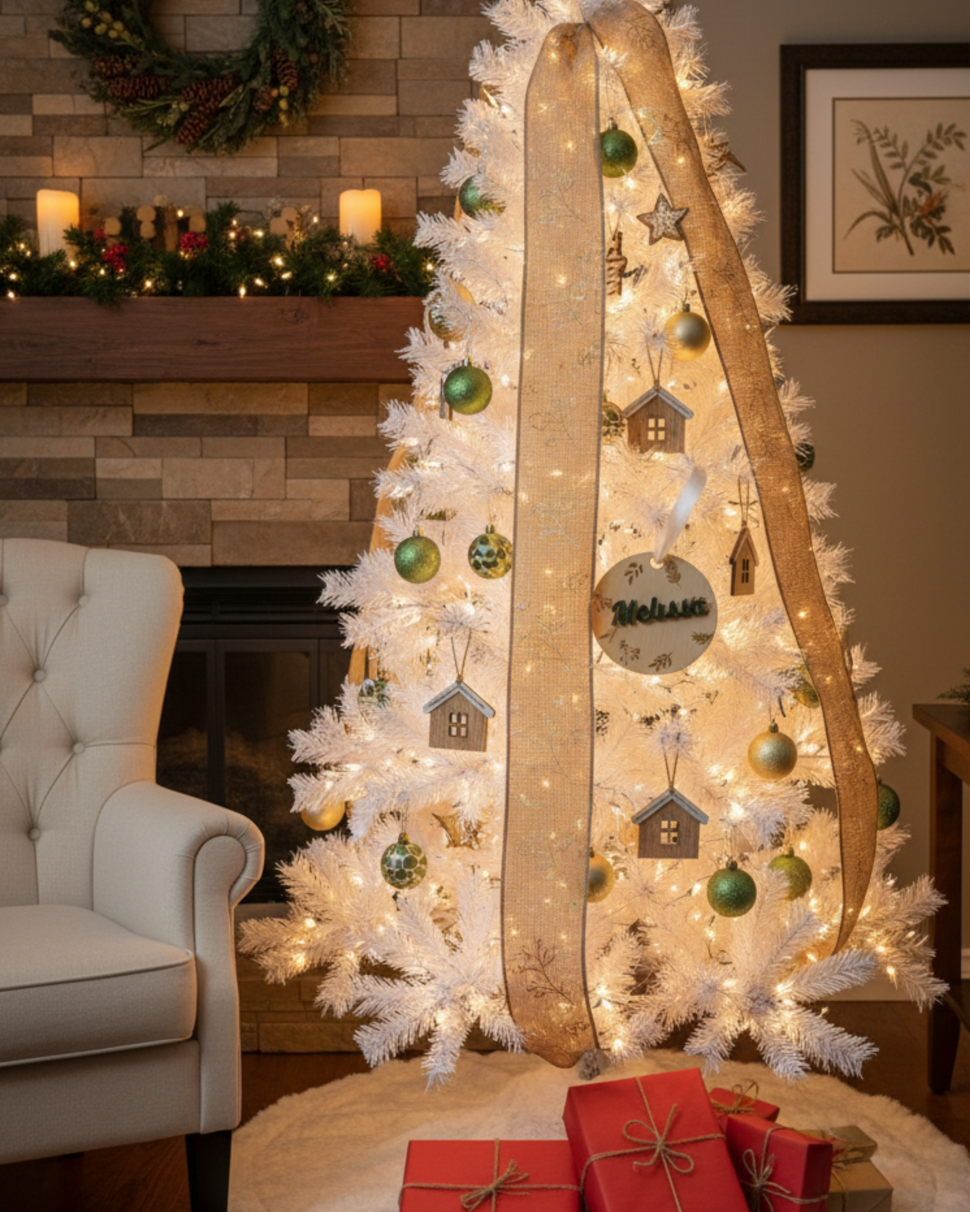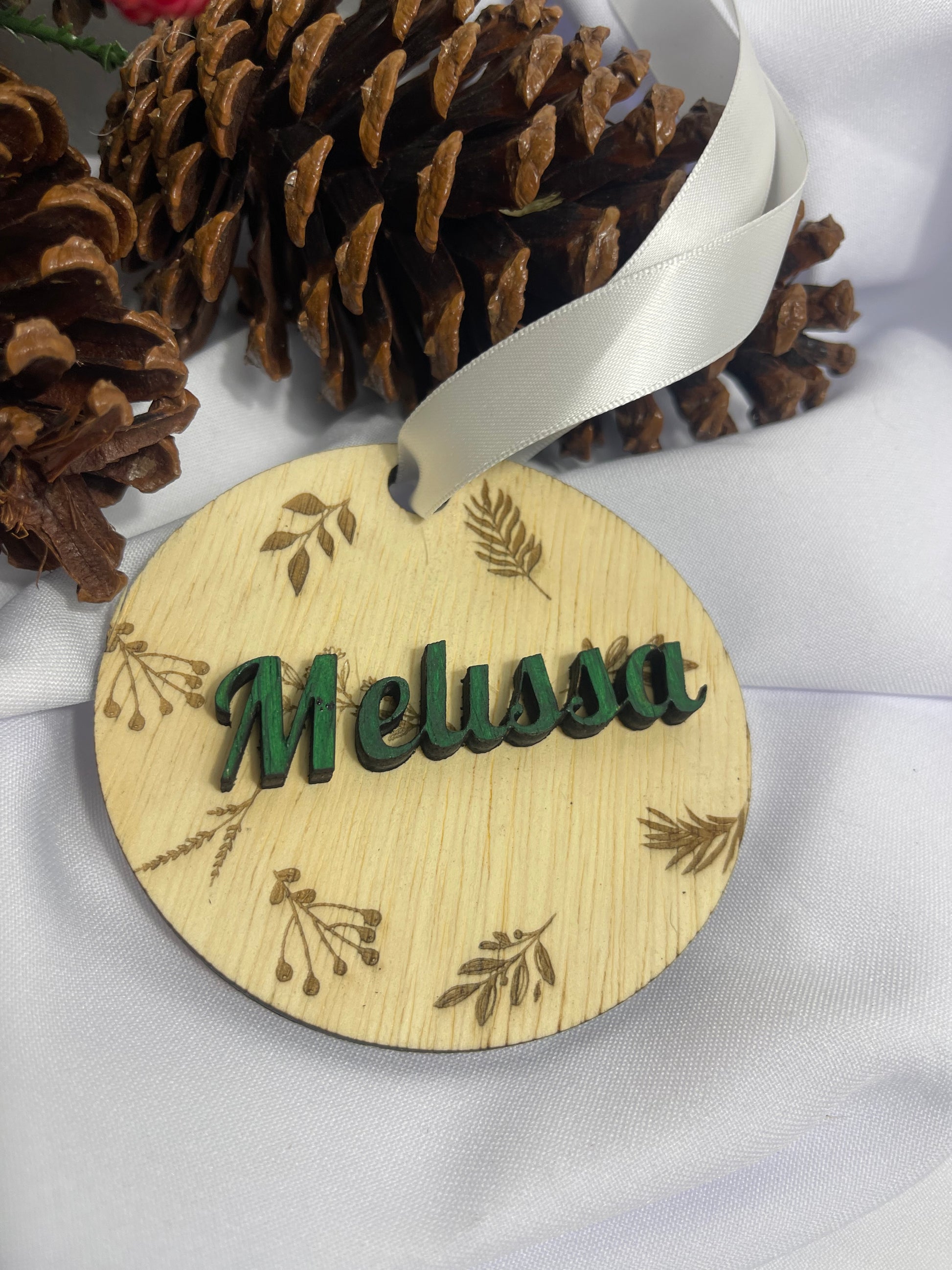 Wooden plant-inspired ornaments that bring a natural and festive touch to your tree or home decoration.
