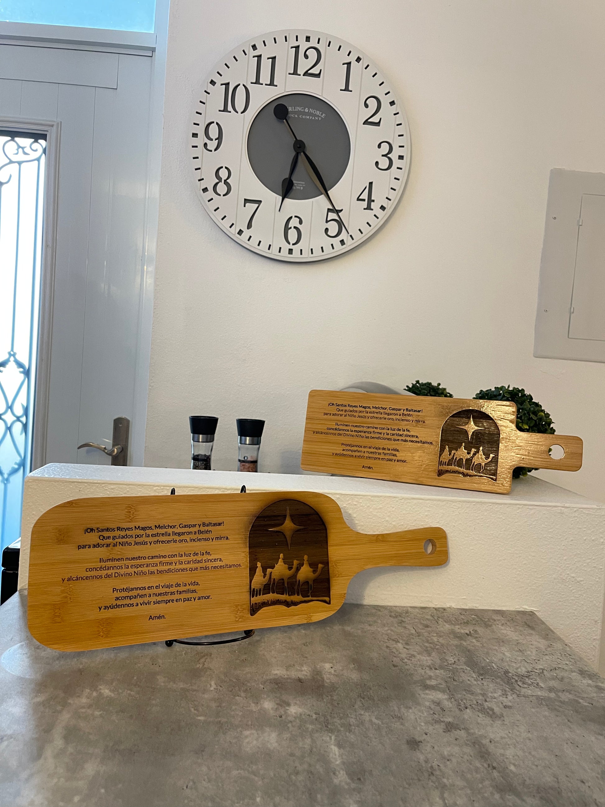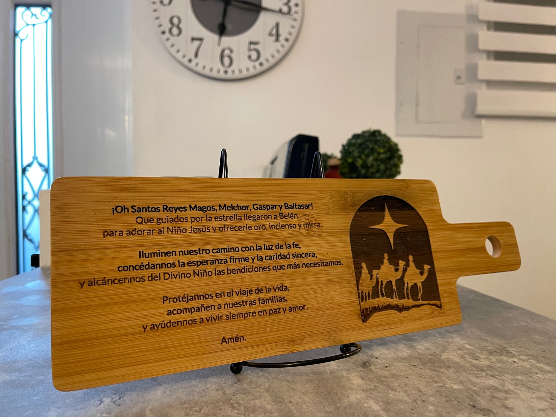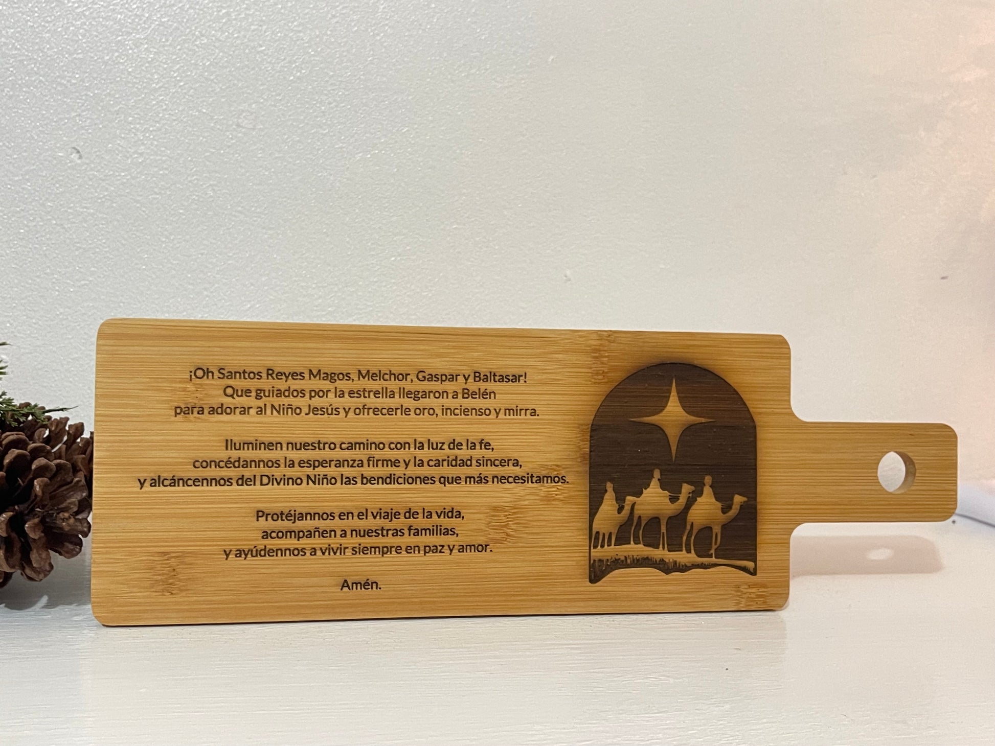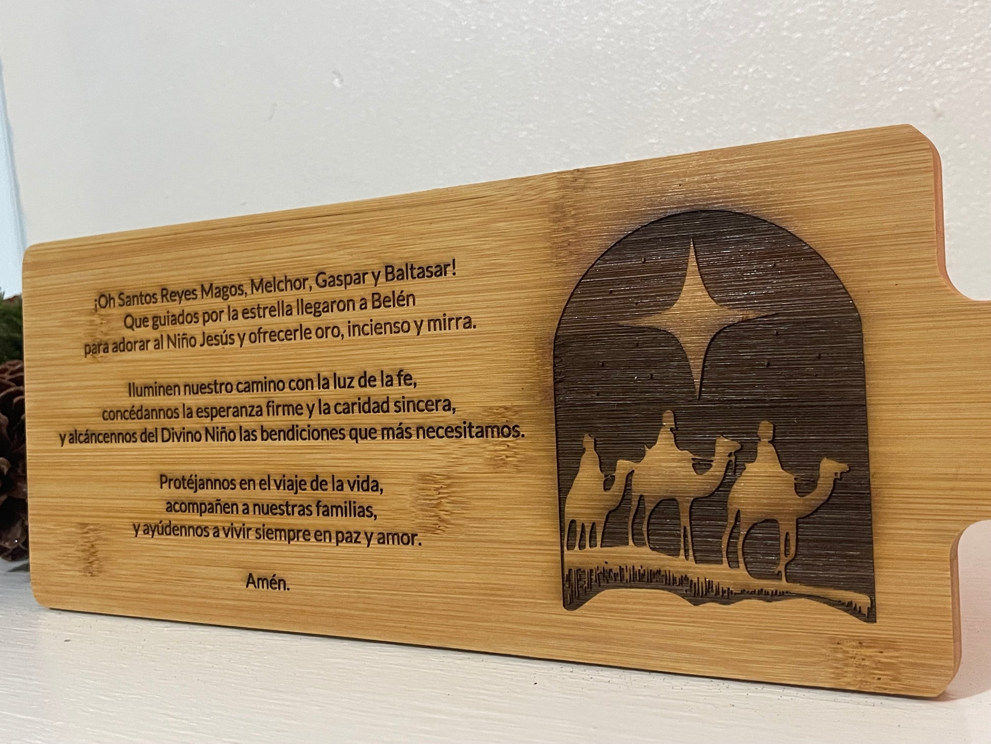 Celebrate Christmas with our beautiful decorative wooden sign featuring the image of the Three Kings along with the traditional Three King Men prayer. Carefully engraved and finished with varnish, this piece adds an elegant and spiritual touch to your home.